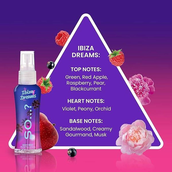 Ibiza Dreams: Alcohol Denat., Aqua ( Water, Eau), Parfum ( Fragrance ), Propylene Glycol ( propylene glycolique), Hydroxycitronellal, Citronellol, Limonene, Linalool , CI 17200 ( D&C Red 33 ). Bali Breeze: Alcohol Denat., Aqua ( Water,Eau), Parfum ( Fragrance ), Propylene Glycol ( propylene glycolique), Linalool, Benzyl salicylate, Alpha-Isomethyl Ionone, Limonene, Coumarin, Citronellol, Farnesol, CI 19140 ( FD&C Yellow 5 ). Miami Vibes: Alcohol Denat., Aqua ( Water, Eau), Parfum ( Fragrance ), Propylene Glycol ( propylene glycolique), Hexyl Cinnamal, Linalool, Limonene, Coumarin, Citronellol, Geraniol, CI 17200 ( D&C Red 33 ). Aurora Nights: Alcohol Denat., Aqua ( Water, Eau), Parfum ( Fragrance ), Propylene Glycol ( propylene glycolique), Linalool, Citronellol, Limonene, Alpha-Isomethyl Ionone, Coumarin, Geraniol.