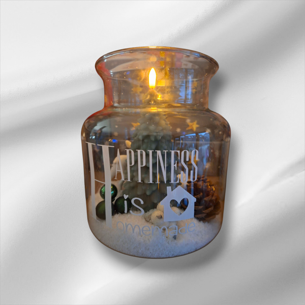 Windlicht met een LED kerstboom. Leuk gedecoreerd met een winters tafereeltje.
