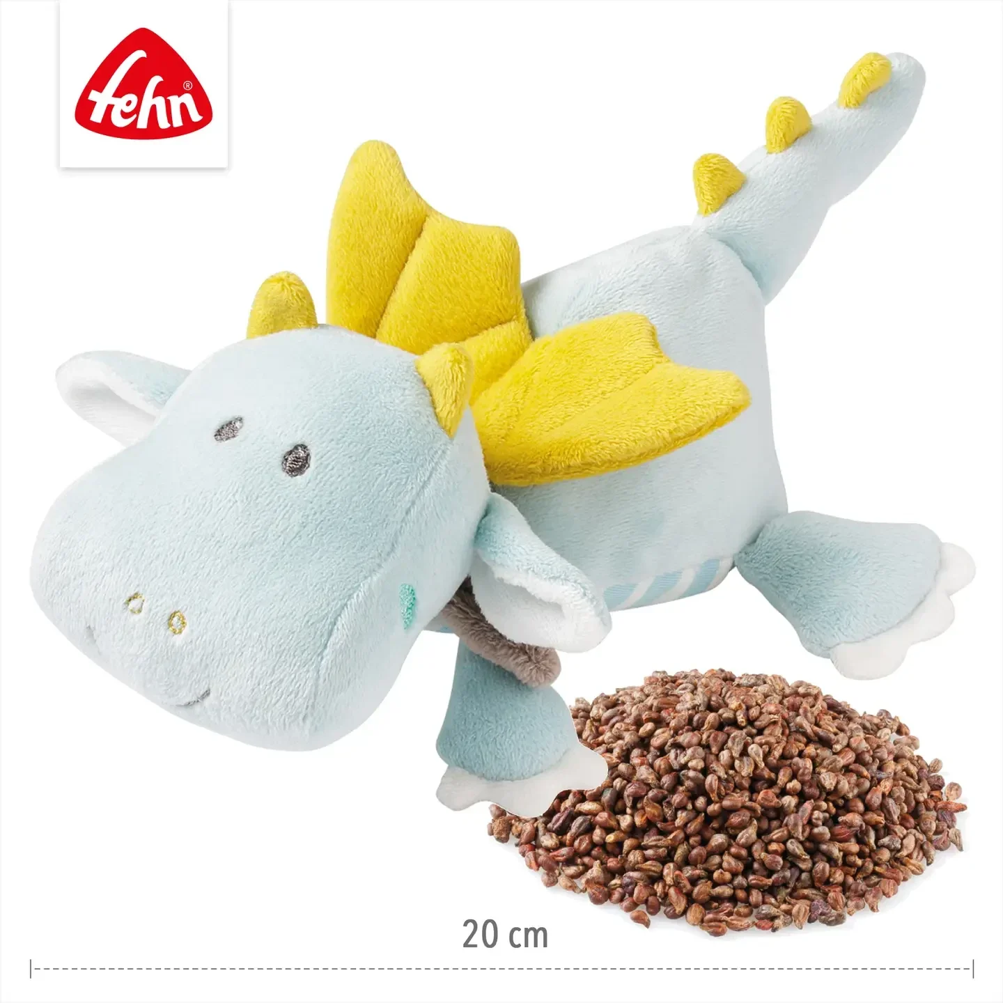 Het schattige drakenverwarmende dier uit de Little Castle-collectie is veelzijdig en het perfecte knuffelvriendje. Dankzij de praktische klittenbandsluiting is de binnenkant eenvoudig te verwijderen en op te warmen in de oven. De druivenpitten passen perfect op het lichaam van de baby, ze zorgen voor een gelijkmatige warmte en kalmeren en troosten de kleintjes in de wieg, in het babyzitje of in de kinderwagen. De warmtezak is heel gemakkelijk te verwijderen - de kitehoes is daarom wasbaar op 30°C en blijft altijd lekker fris en knuffelig! maat 23 Blau vanaf 0+ maanden CE-label Wasbaarheid: 30°C Buitenmateriaal: velours (100% polyester), jersey (95% katoen, 5% elastaan) /vulling: 100% polyester/druivenpitzak: 100% polyester