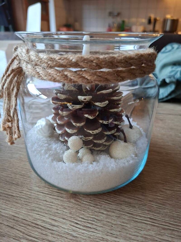 Leuk windlicht met LED dennenappel incl batterijen. De decoratie komt los mee. 15x15 cm